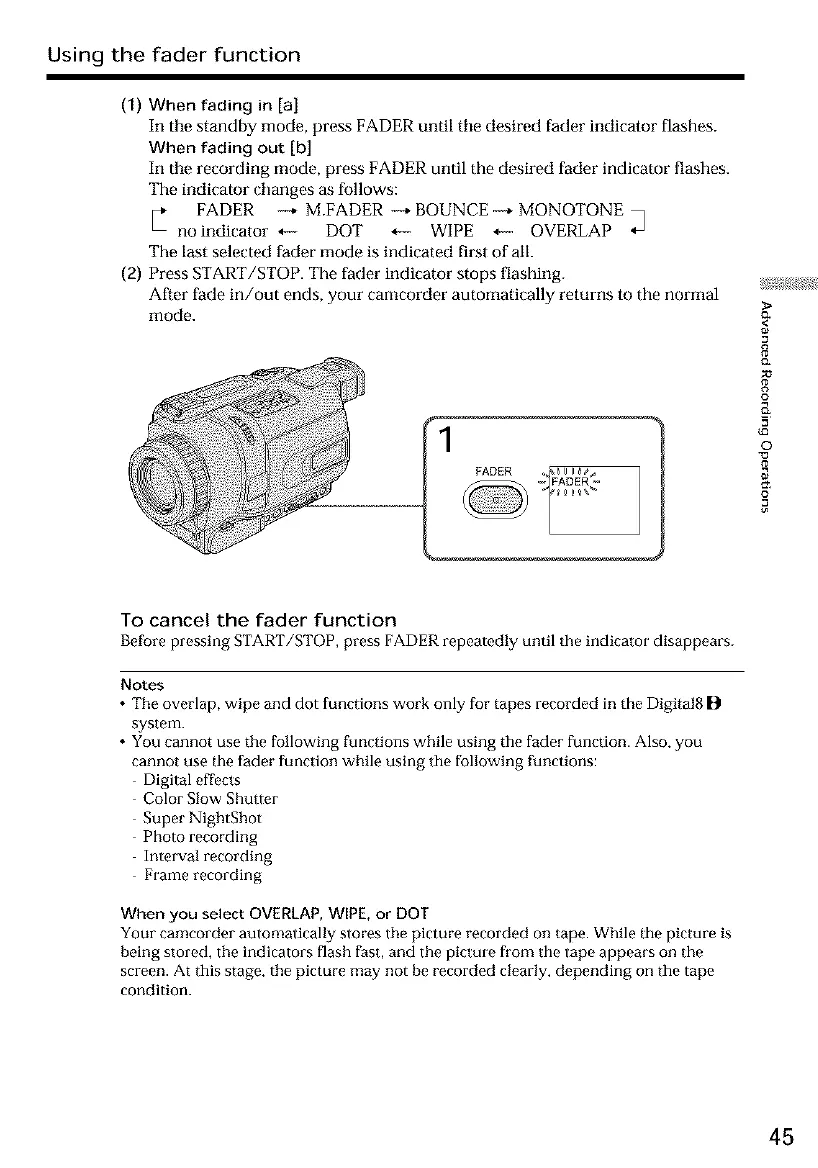 • You cannot use the following functions while using the fader function. Also, you