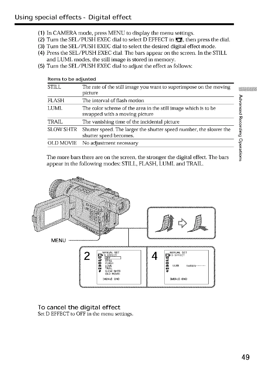 (3) Turn the SEL/PUSH EXEC dial to select tile desired digital effect mode.