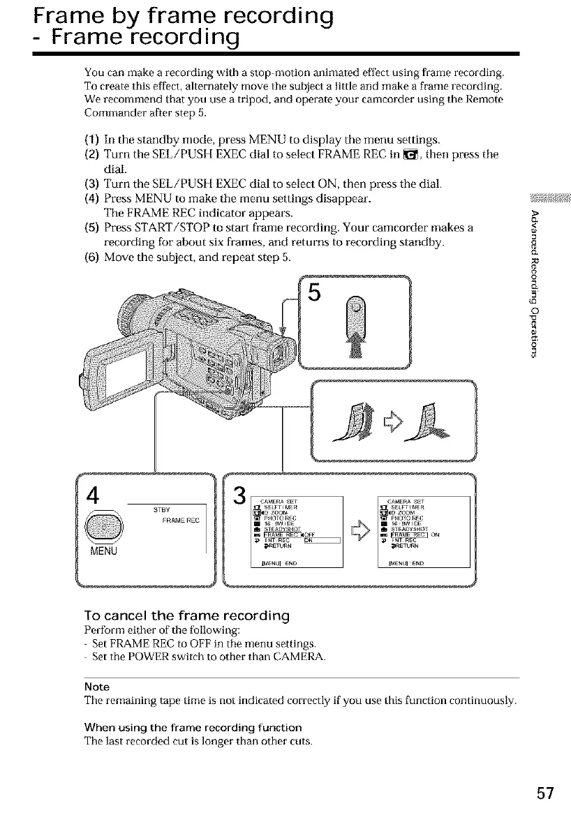(2) Turn the SEL/PUSH EXECdial to select FRAME RECin _1_,then press tile