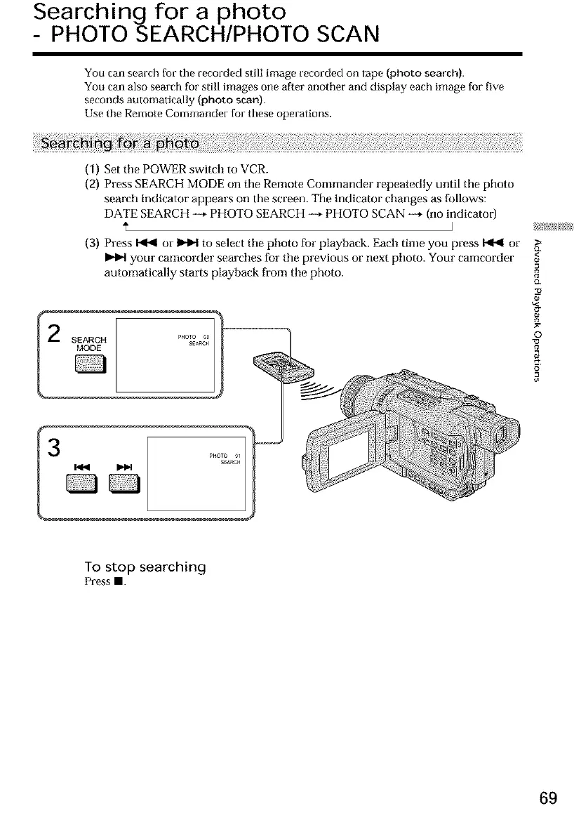 (2) Press SEARCH MODE on the Remote Commander repeatedly until the photo
