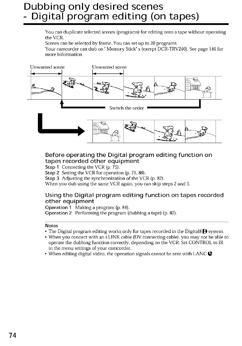 • The Digital program editing works only for tapes recorded in the Digital8 _} system.