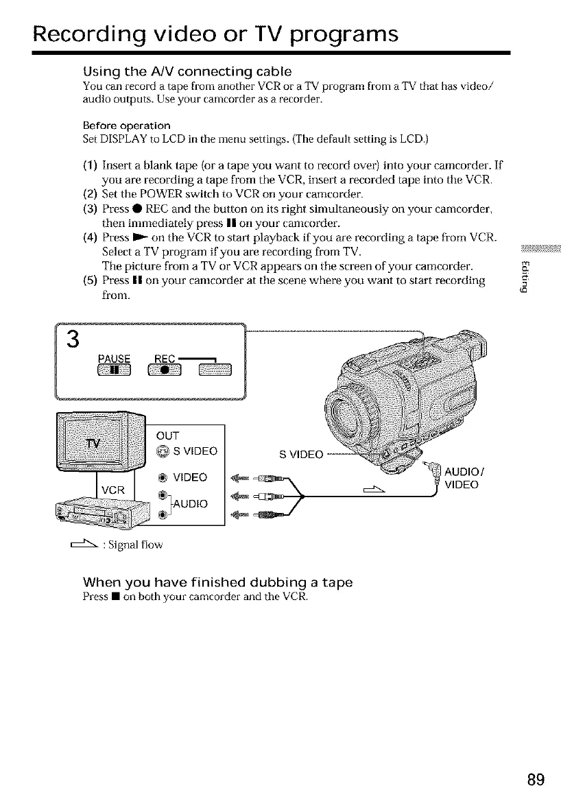 The picture from a TV or VCR appears on tile screen of your cameorder.