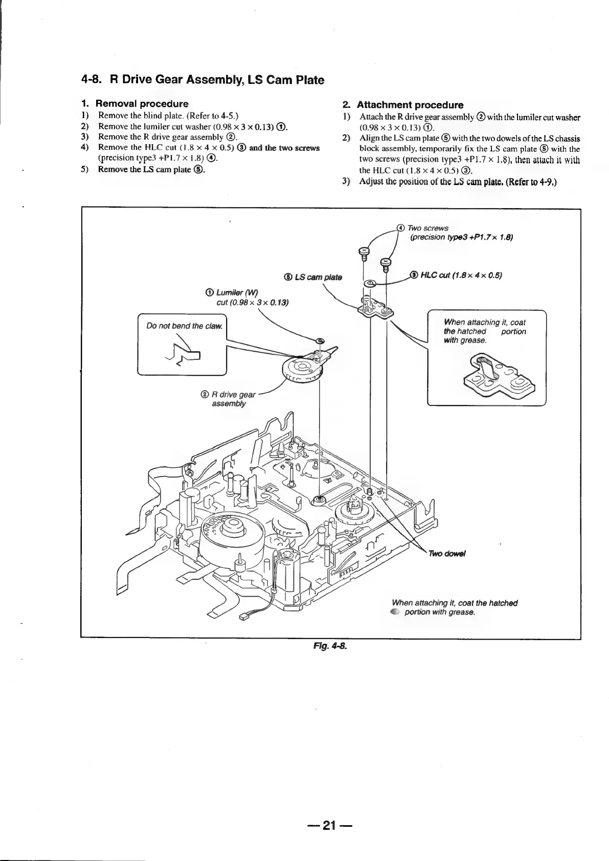 Sony Digital8 M2000 - R Drive Gear Assembly. LS Cam Plate
