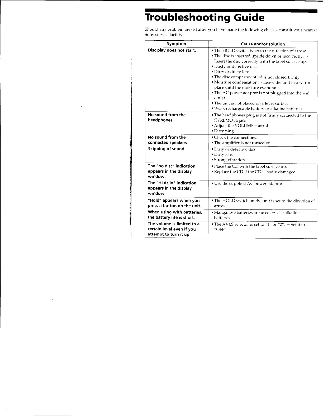 Sony Discman D232 - Troubleshooting Guide