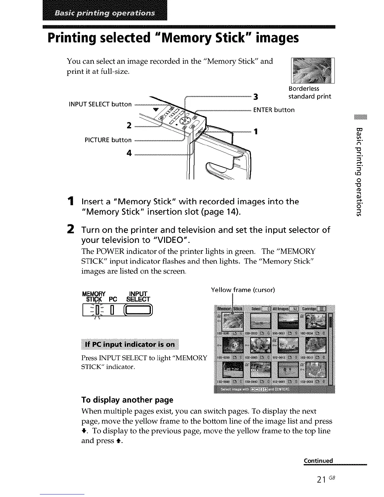 Printing selected "Memory Stick" images