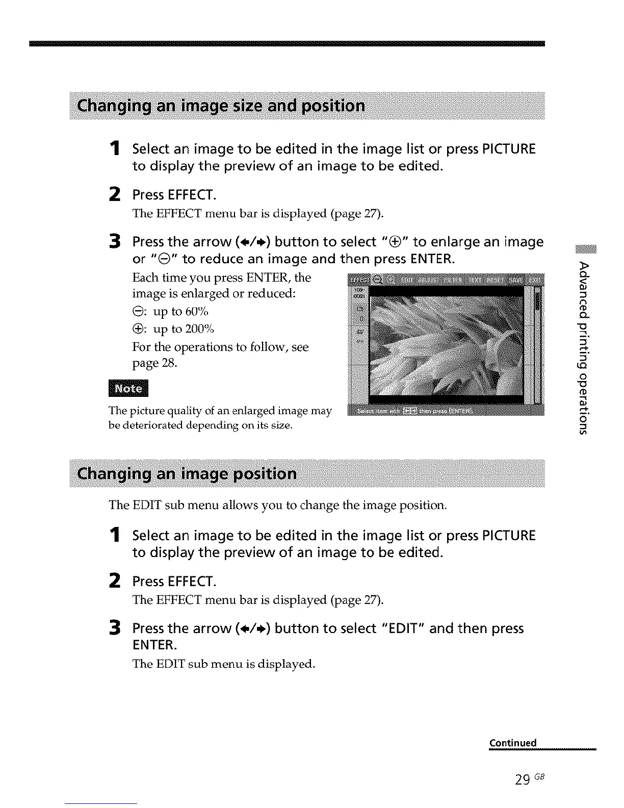 Press the arrow (_,/,_) button to select "(_)" to enlarge an image