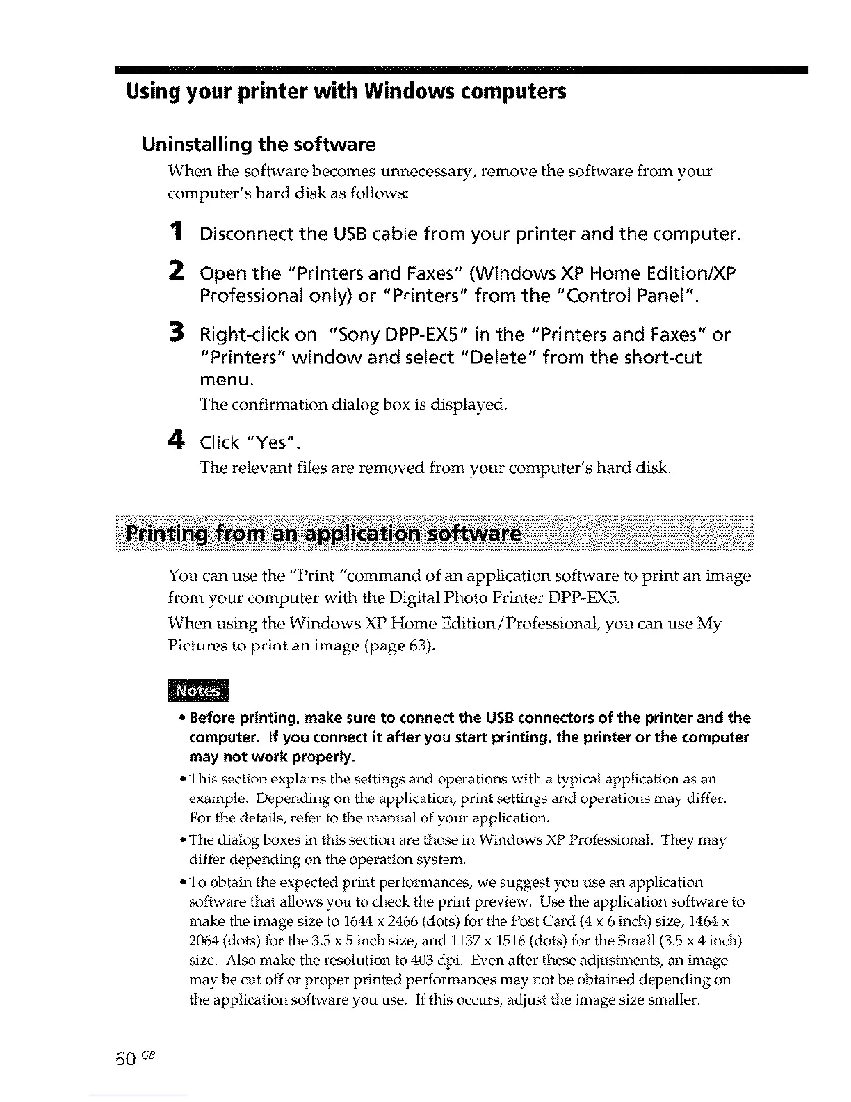 3 Right-click on "Sony DPP-EX5" in the "Printers and Faxes" or