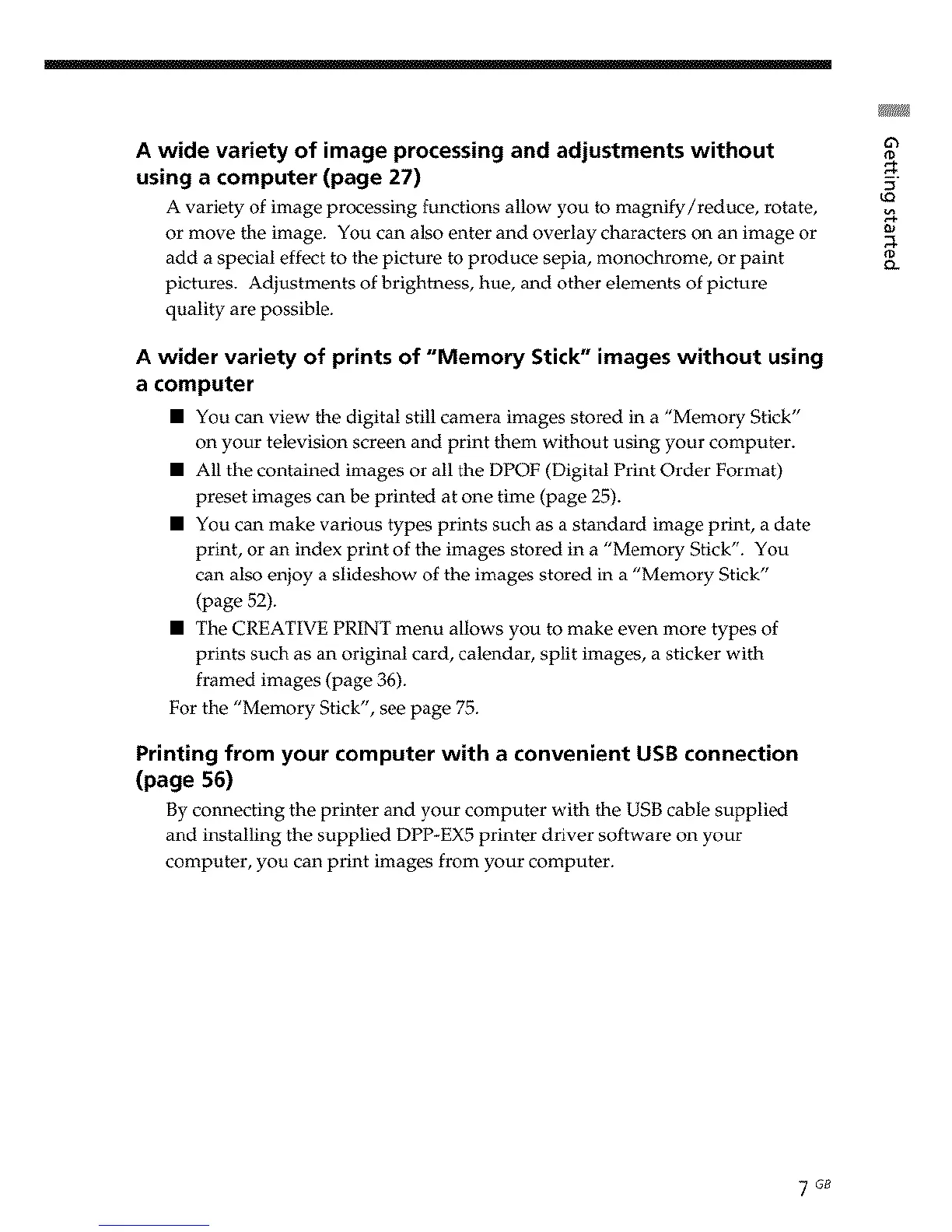 print, or an index print of the images stored in a "Memory Stick". You