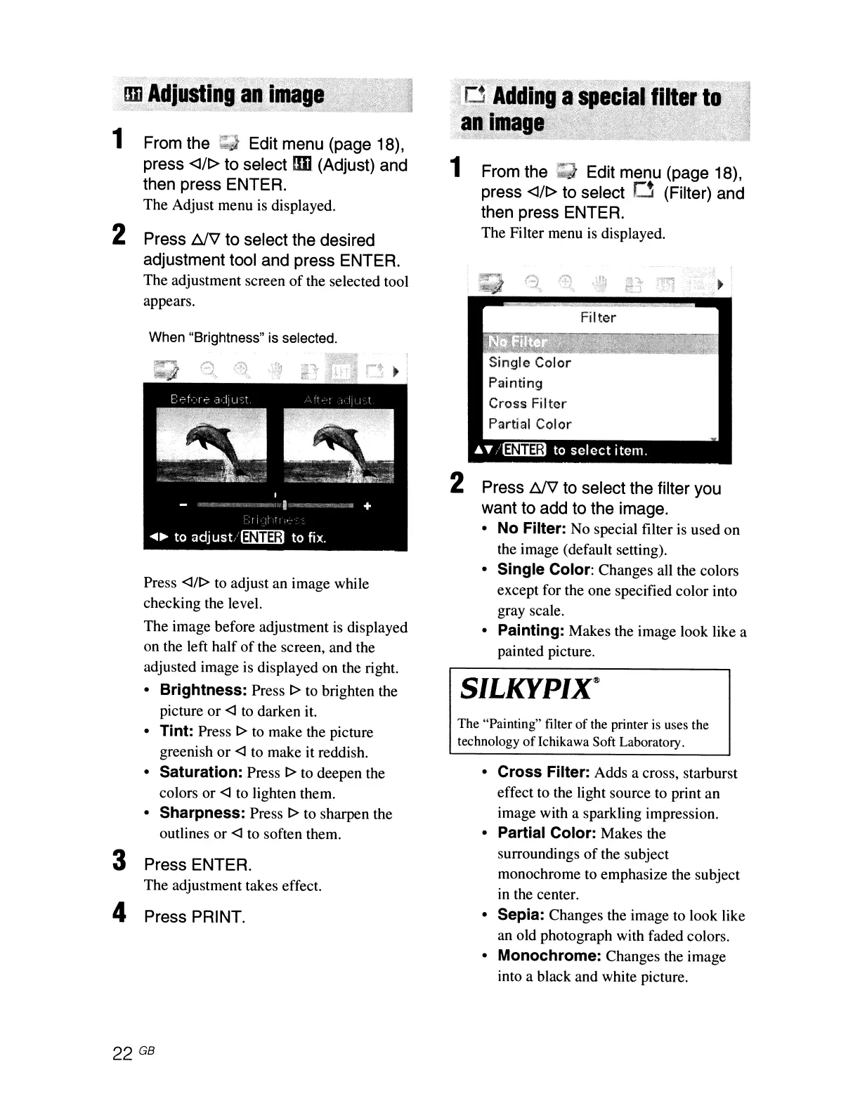 The "Painting" filter of the printer