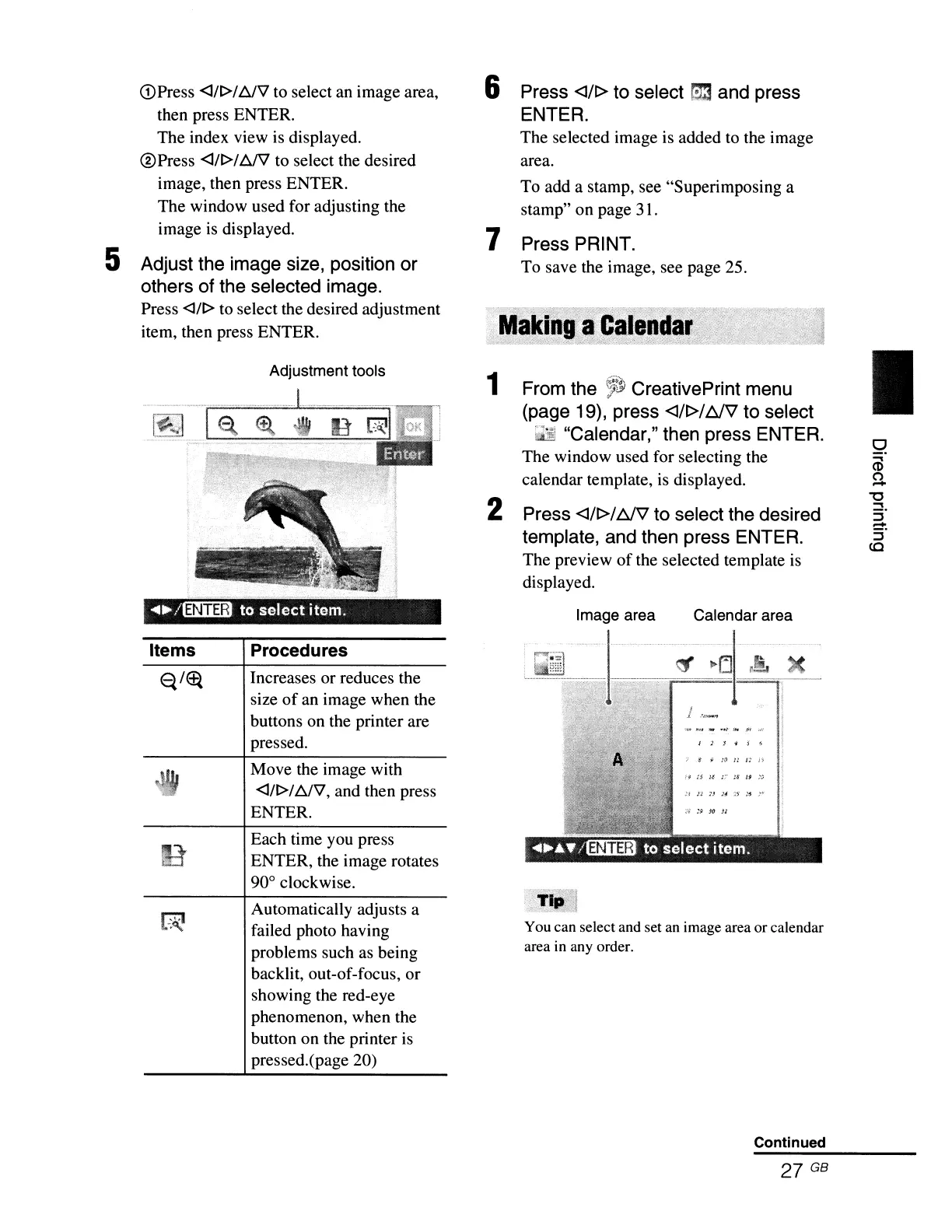 You can select and set an image area or calendar