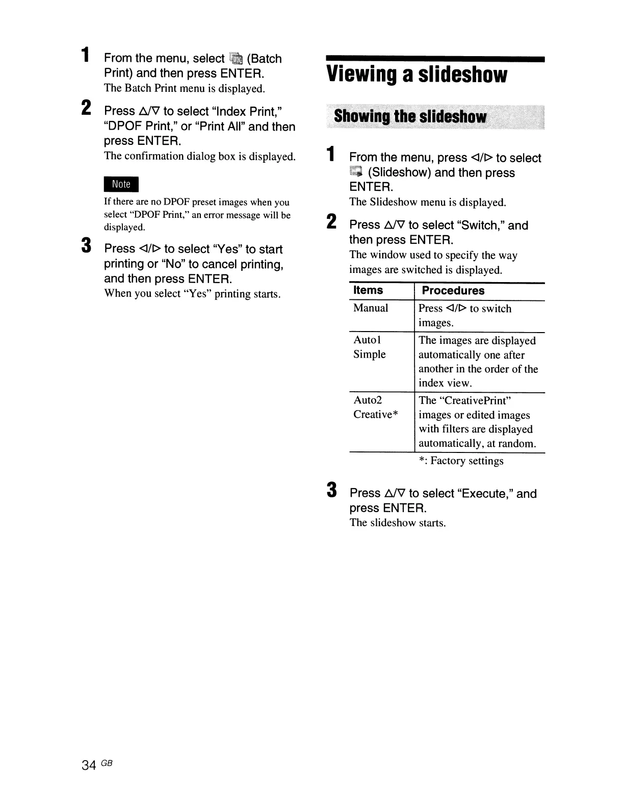 (Slideshow) and then press