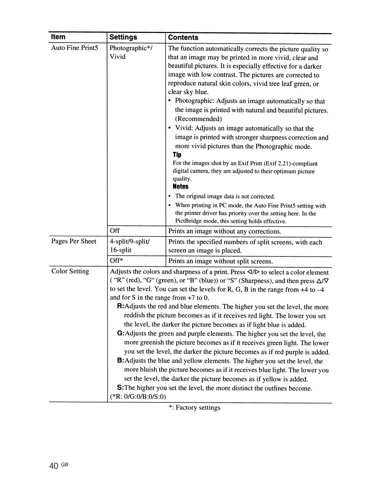 Auto Fine Print5 Photographic*I The function automatically corrects the picture quality so