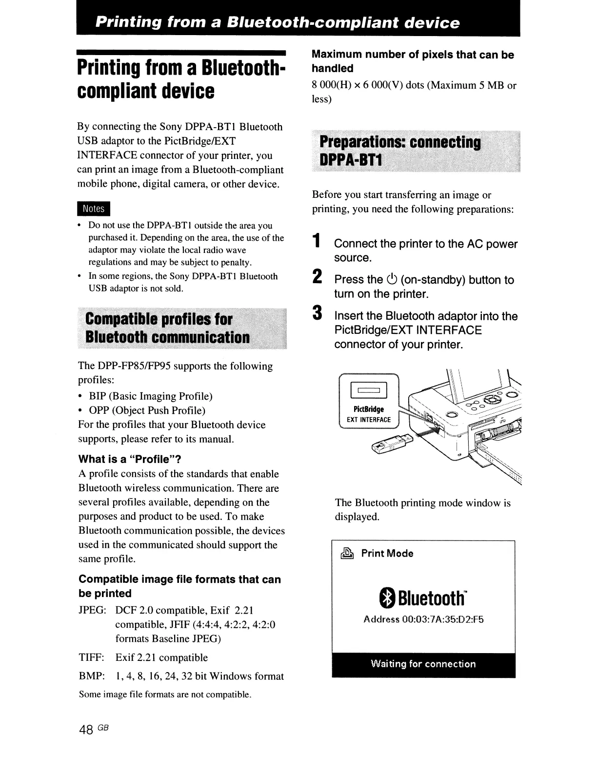• In some regions, the Sony DPPA-BTI Bluetooth