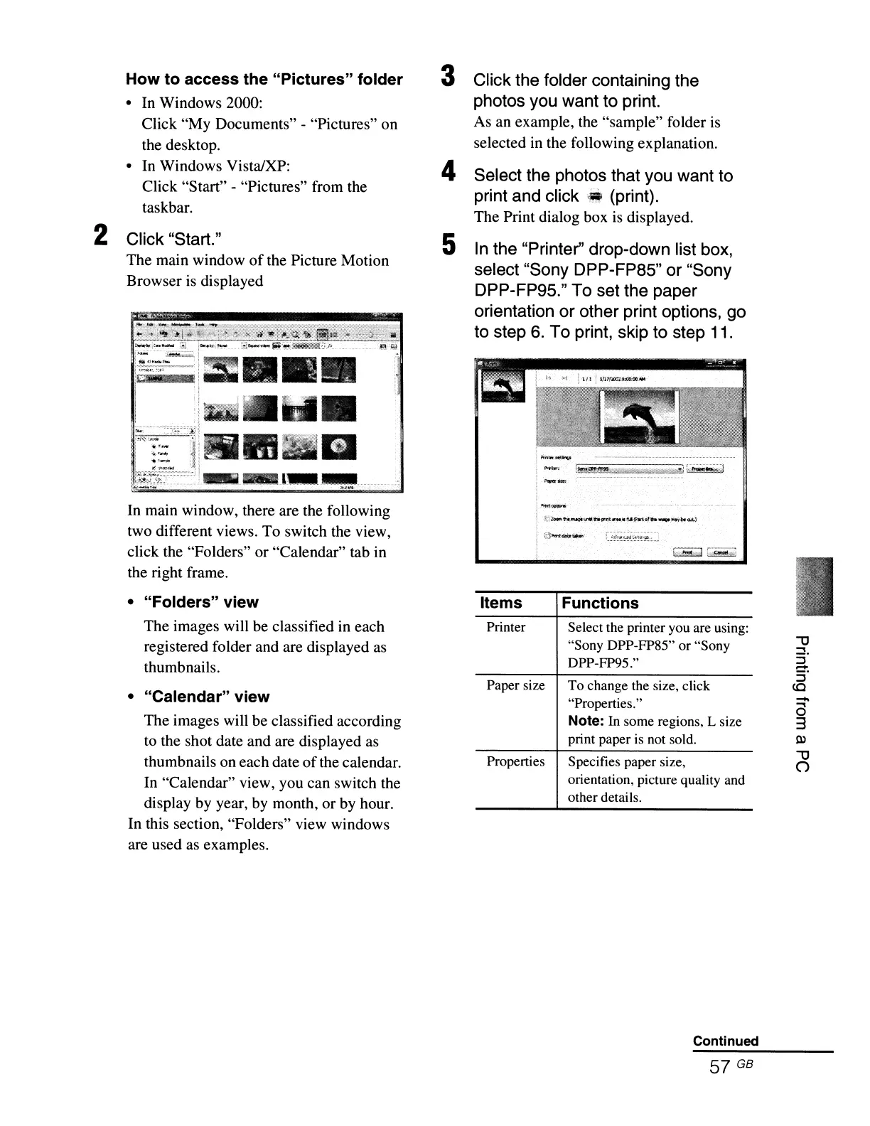 select "Sony DPP-FP85" or "Sony