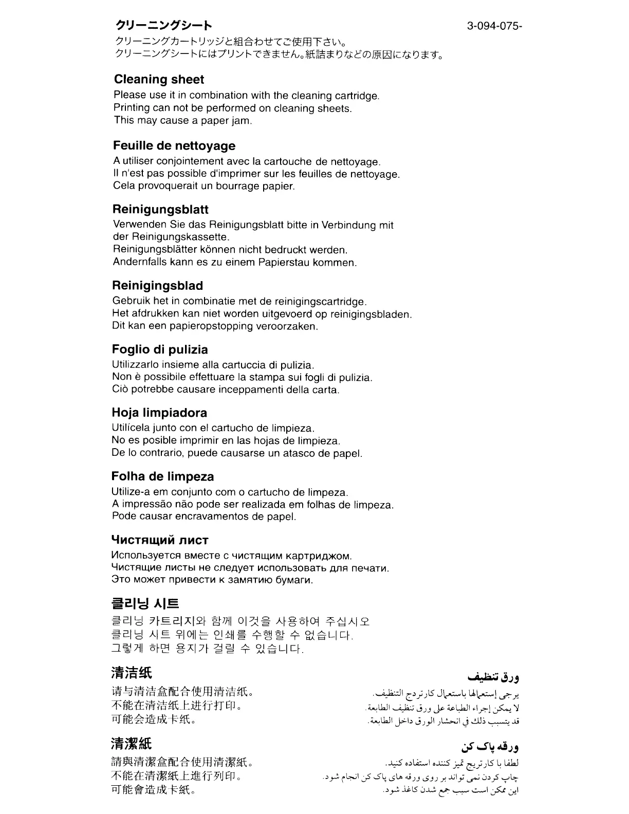 Reinigungsblatter kbnnen nicht bedruckt werden.