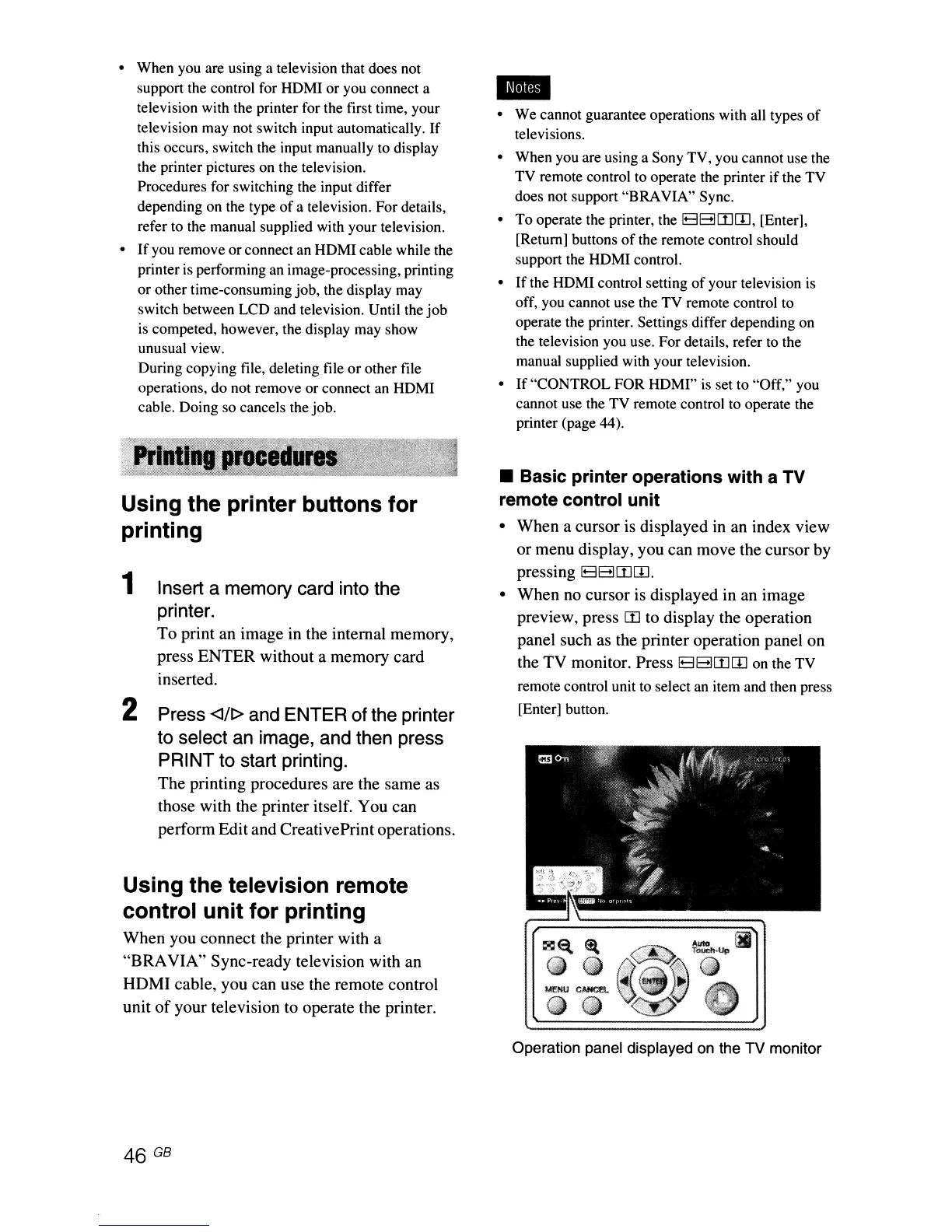 your television to operate the printer.