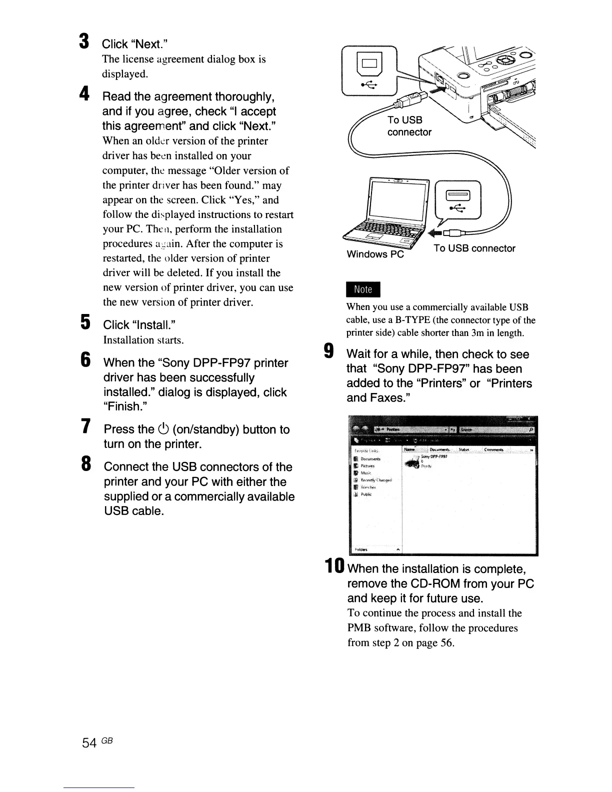 cable, use a B-TYPE (the connector type
