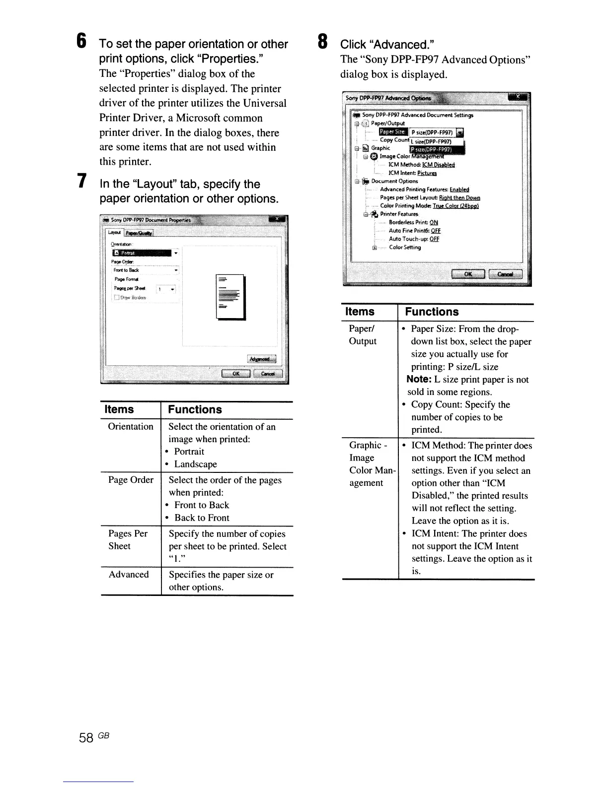 The "Sony DPP-FP97 Advanced Options"