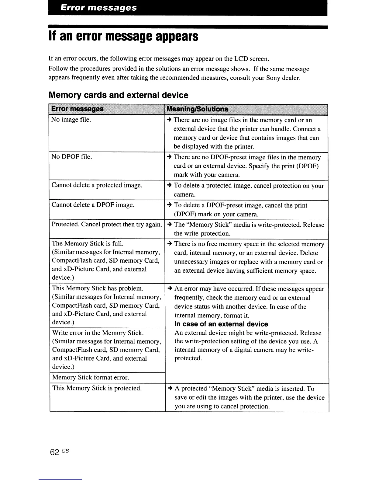 error occurs, the following error messages may appear on the LCD screen.
