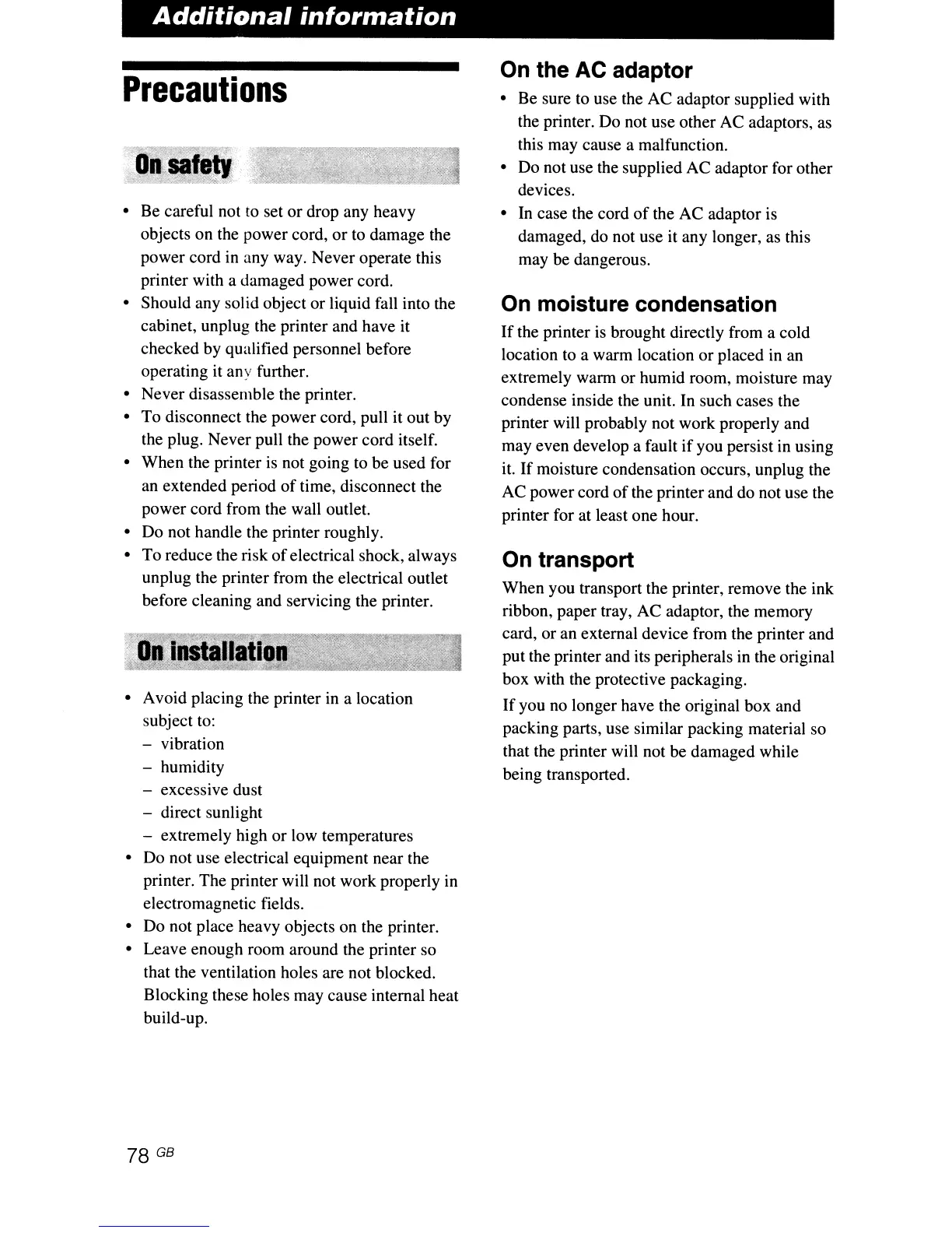 the printer. Do not use other AC adaptors, as