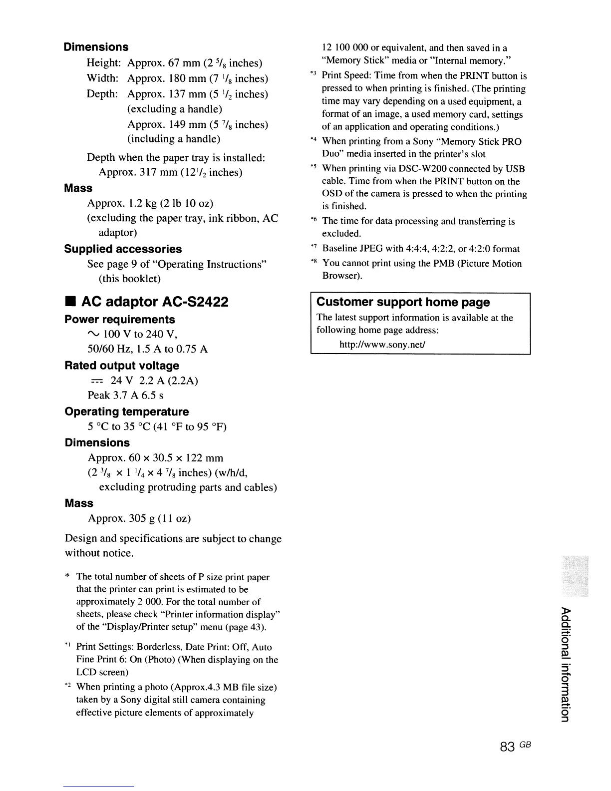 (excluding the paper tray, ink ribbon, AC