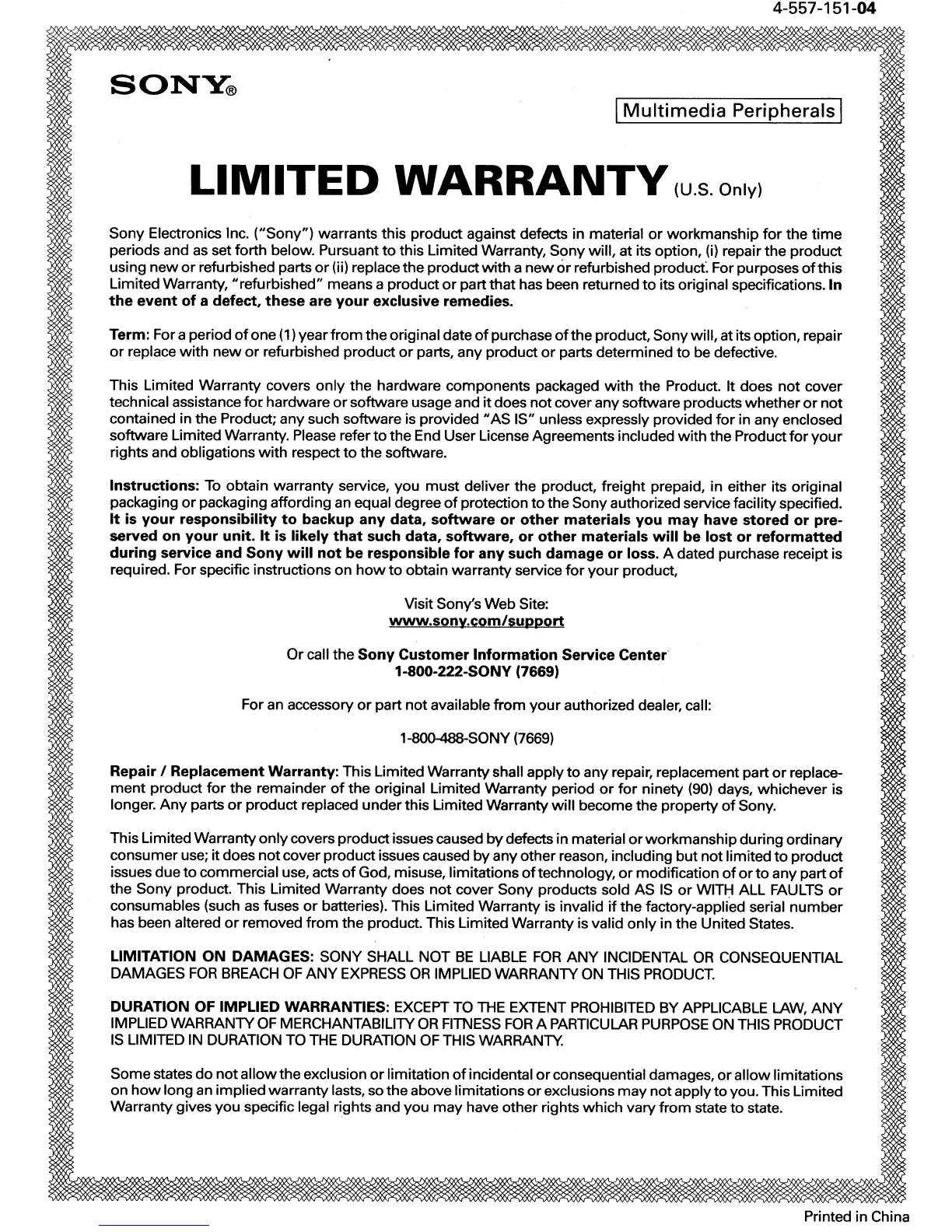 this Limited Warranty, Sony will, at its option,