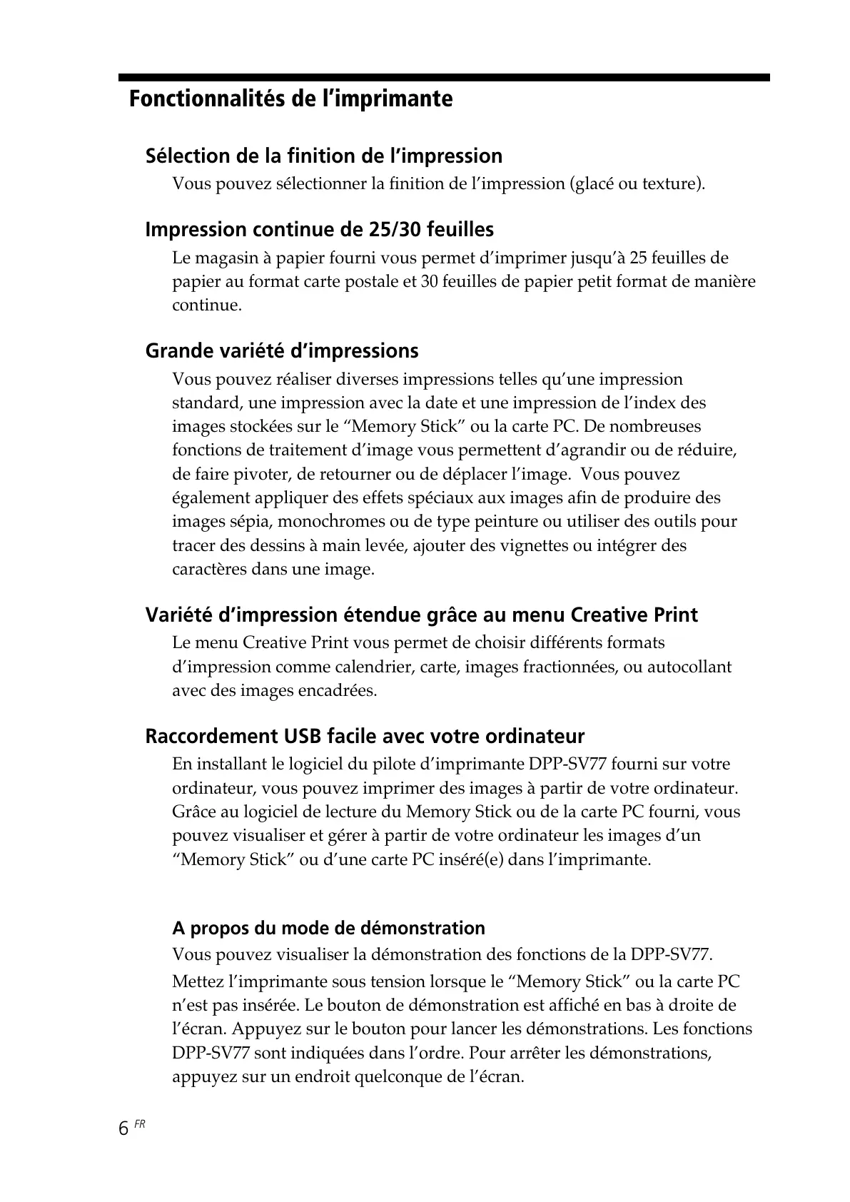 DPP-SV77 sont indiquées dans l’ordre. Pour arrêter les démonstrations,