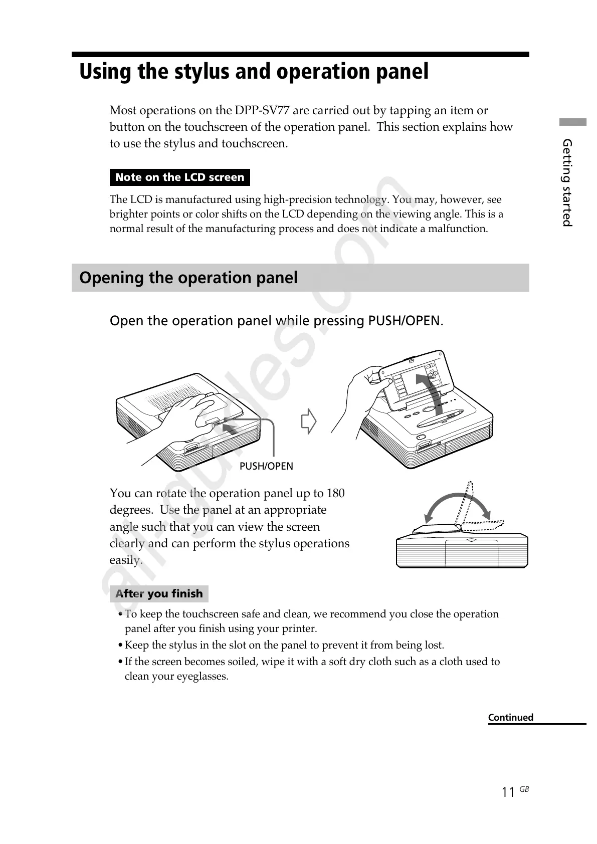 Opening the operation panel