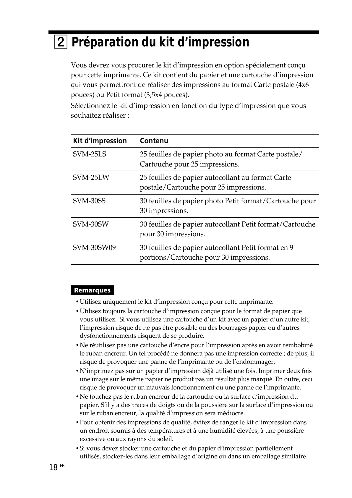 •Utilisez uniquement le kit d’impression conçu pour cette imprimante.
