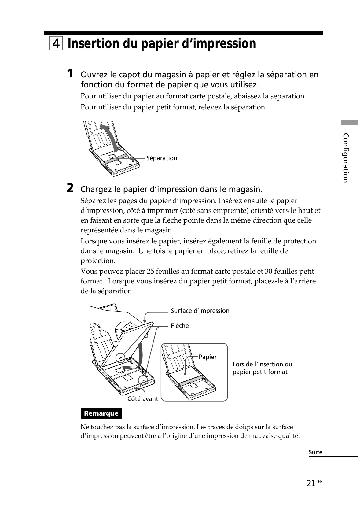 Ne touchez pas la surface d’impression. Les traces de doigts sur la surface
