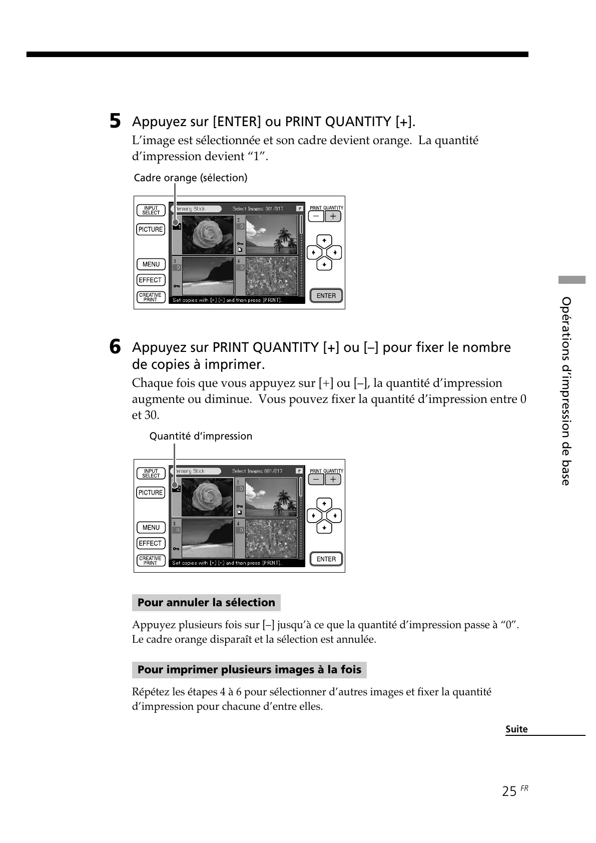 Appuyez sur [ENTER] ou PRINT QUANTITY [+].
