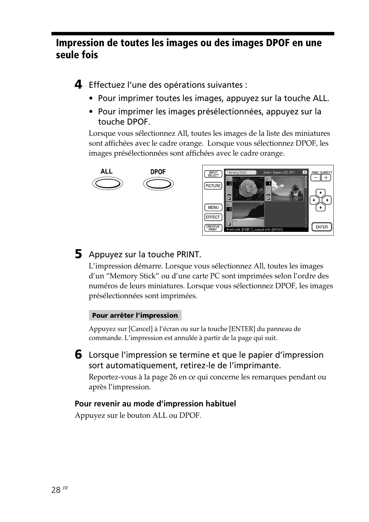 • Pour imprimer toutes les images, appuyez sur la touche ALL.