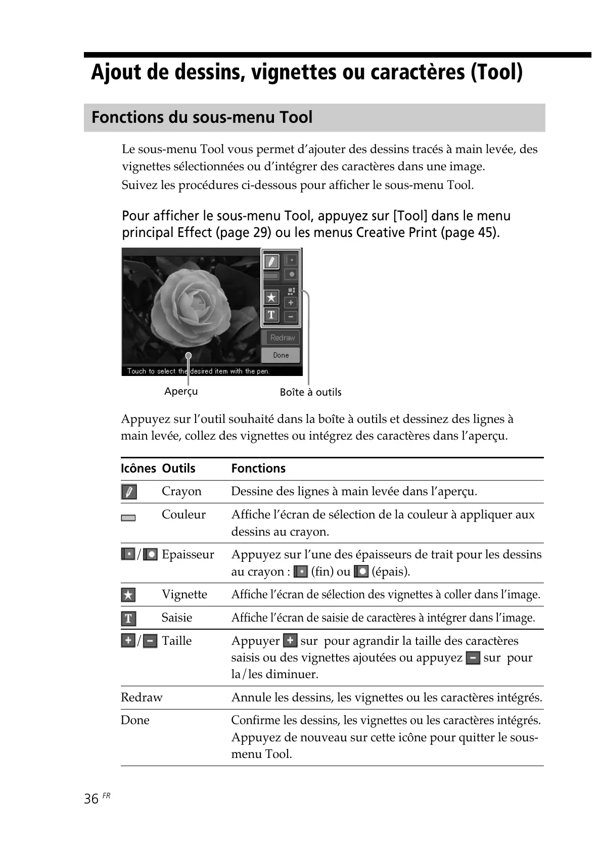 principal Effect (page 29) ou les menus Creative Print (page 45).
