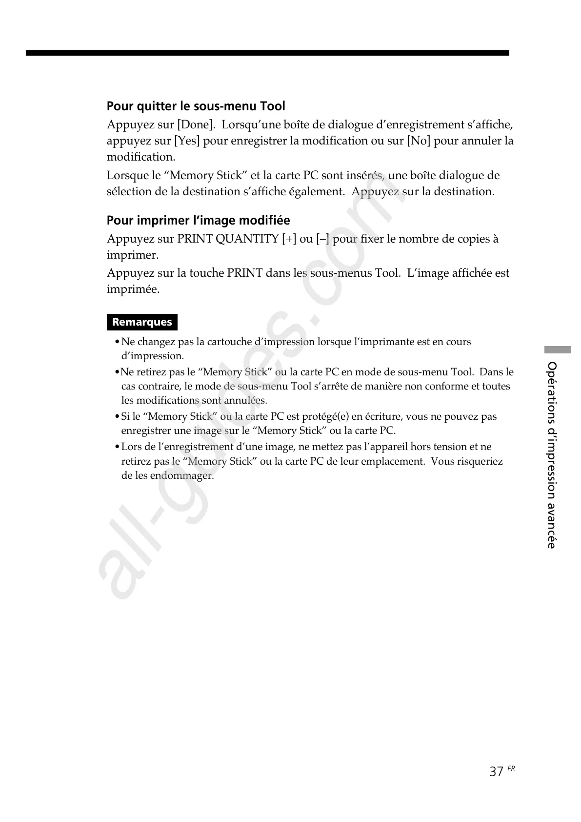•Ne retirez pas le “Memory Stick” ou la carte PC en mode de sous-menu Tool. Dans le