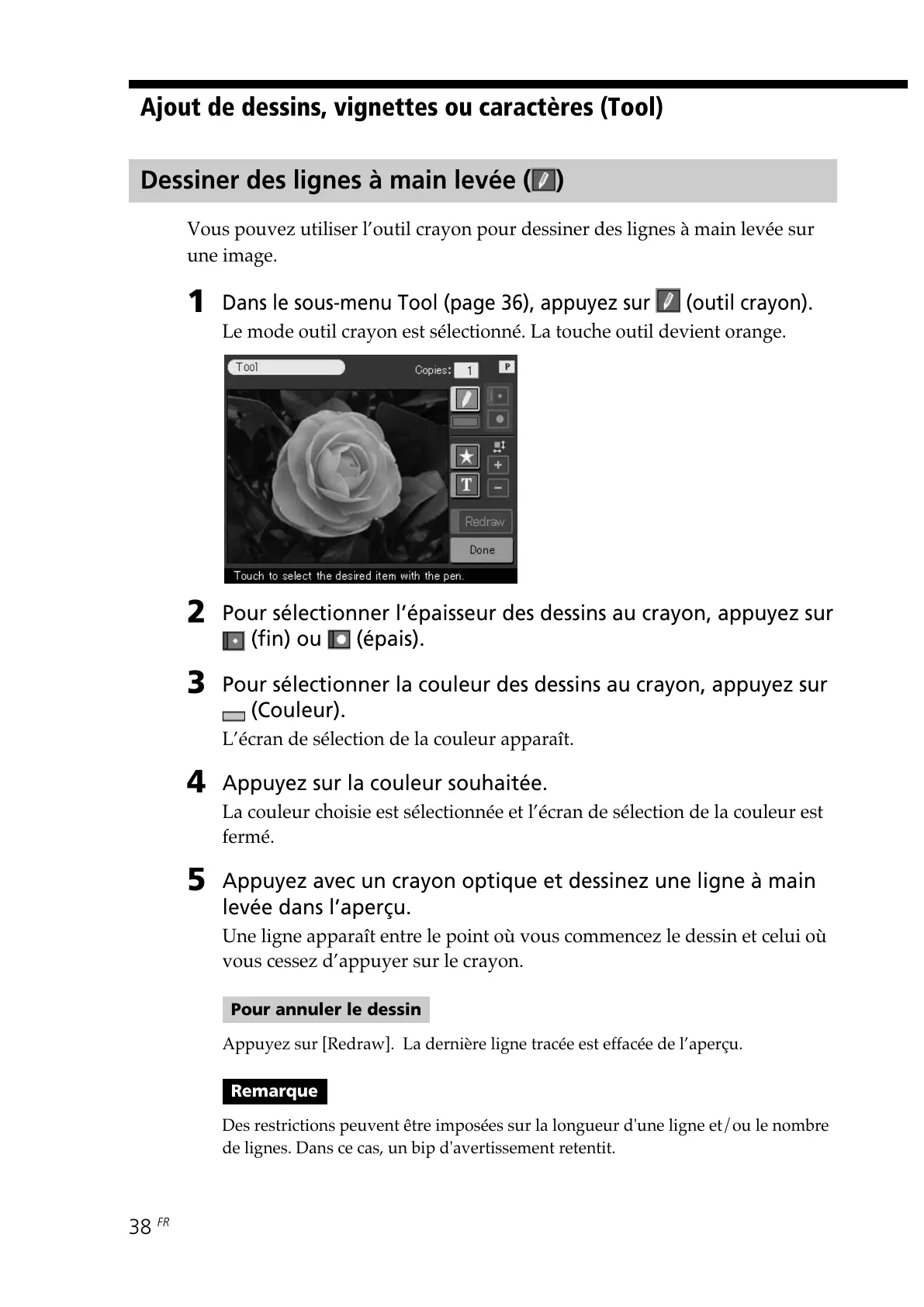 Dans le sous-menu Tool (page 36), appuyez sur (outil crayon).