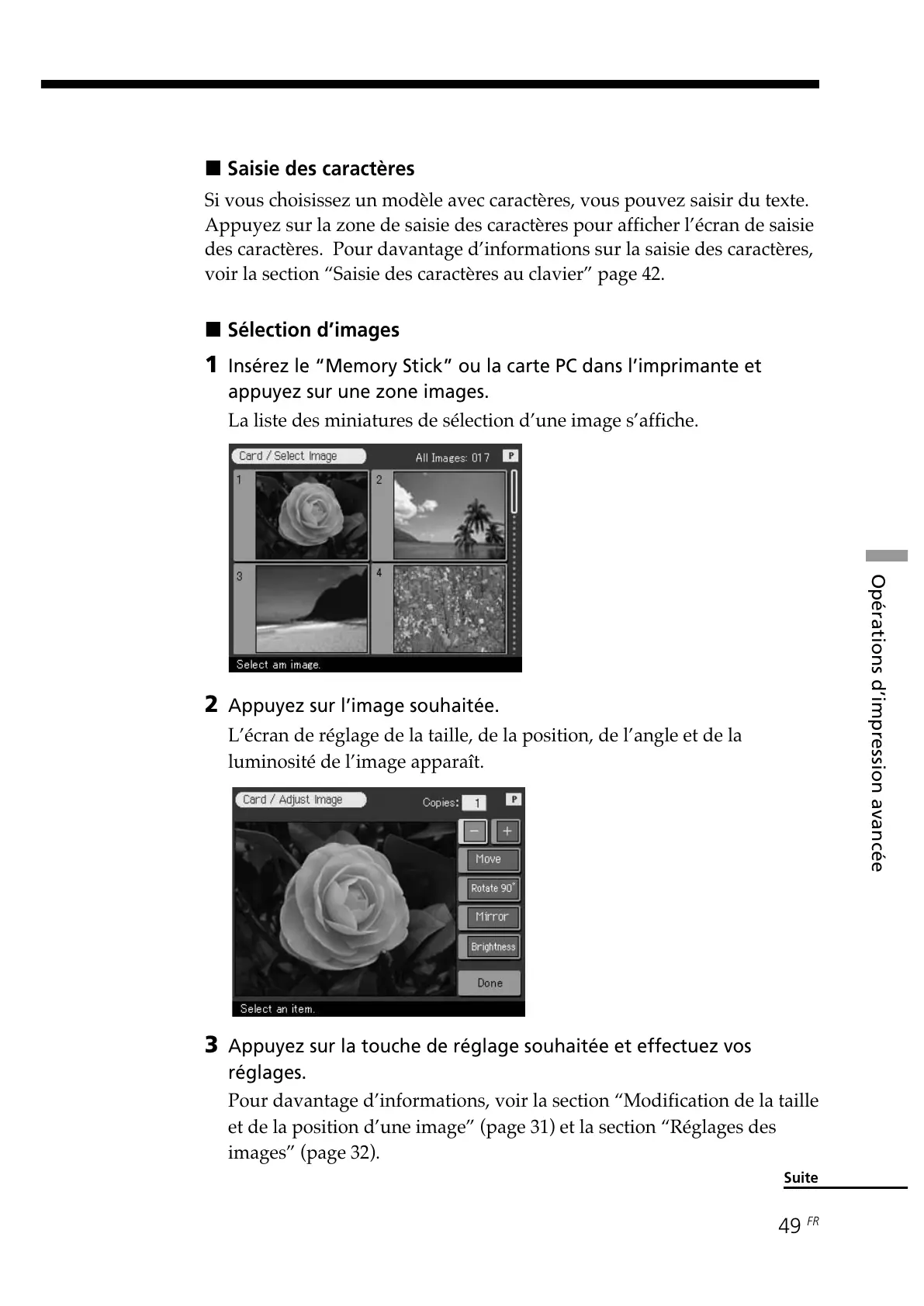 et de la position d’une image” (page 31) et la section “Réglages des