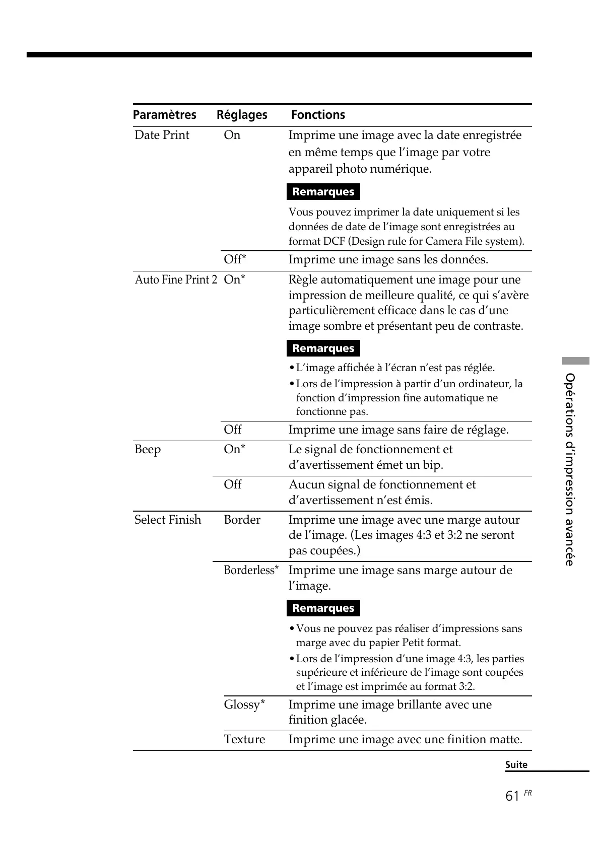 •Lors de l’impression d’une image 4:3, les parties