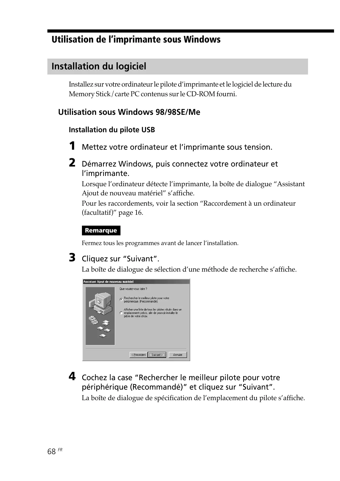 Utilisation sous Windows 98/98SE/Me