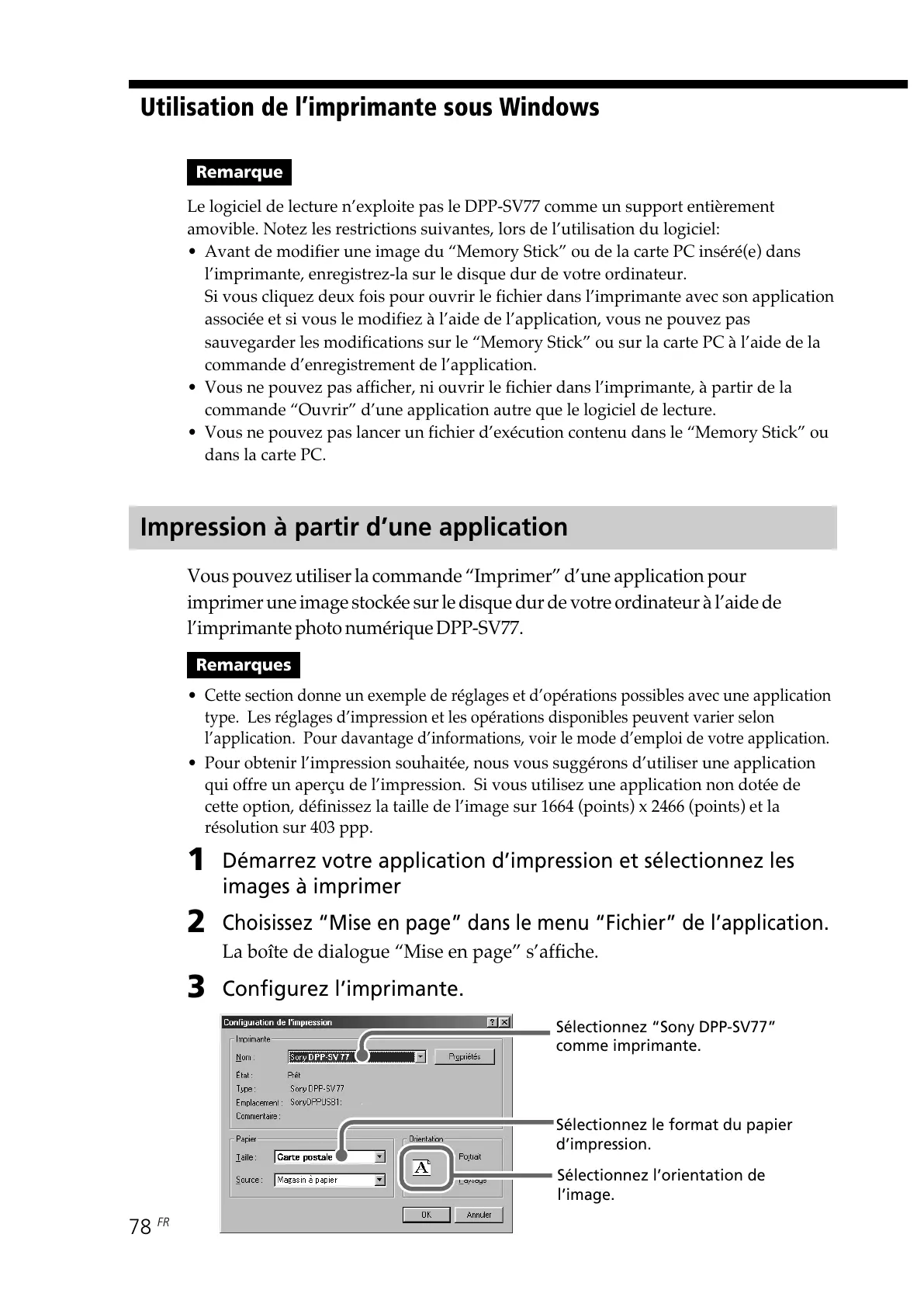 Sélectionnez “Sony DPP-SV77”