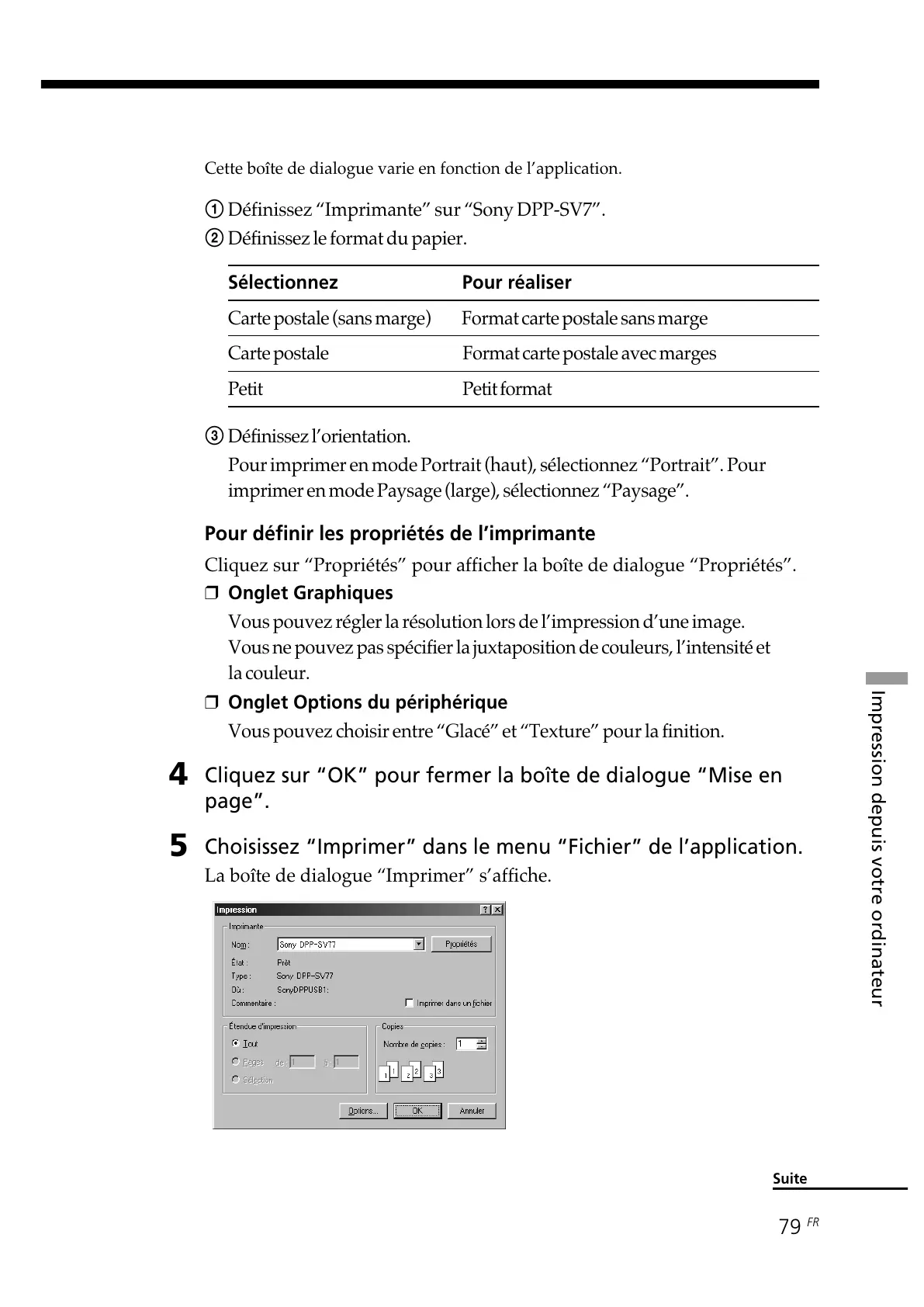 1 Définissez “Imprimante” sur “Sony DPP-SV7”.