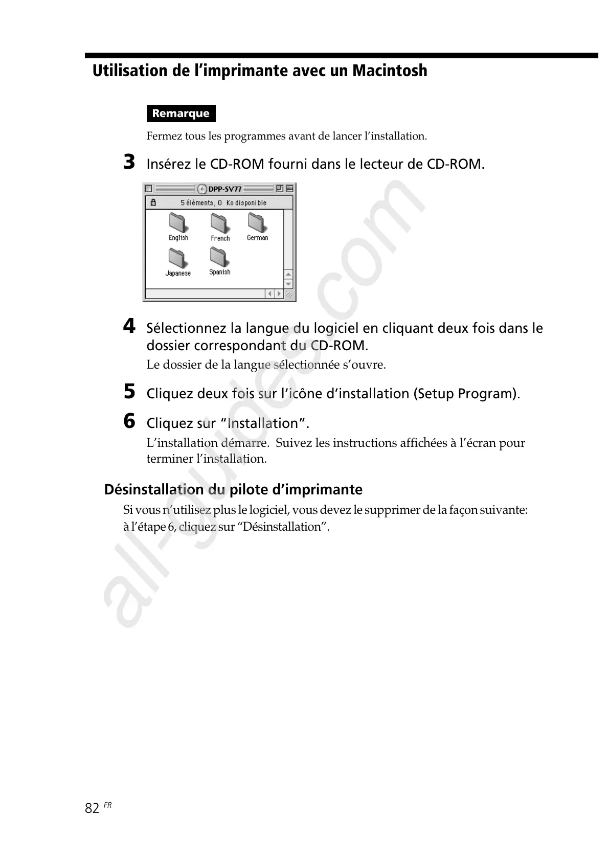 Désinstallation du pilote d’imprimante
