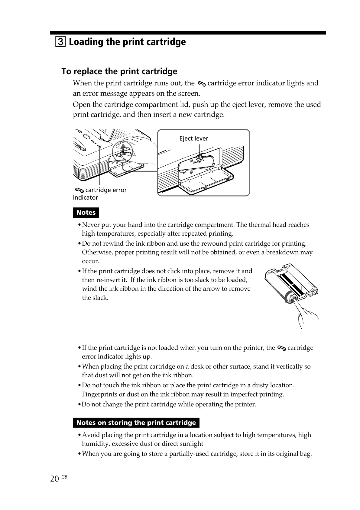 •Do not touch the ink ribbon or place the print cartridge in a dusty location.