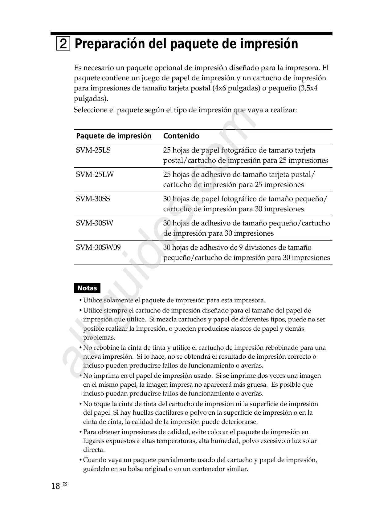 •Utilice solamente el paquete de impresión para esta impresora.