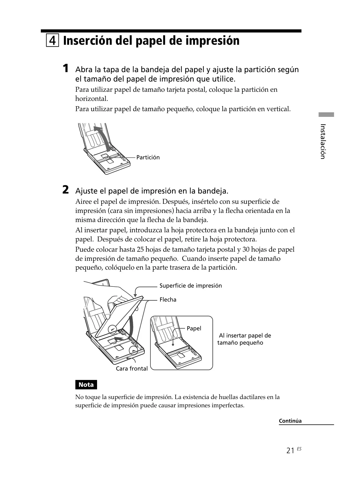 de impresión de tamaño pequeño. Cuando inserte papel de tamaño