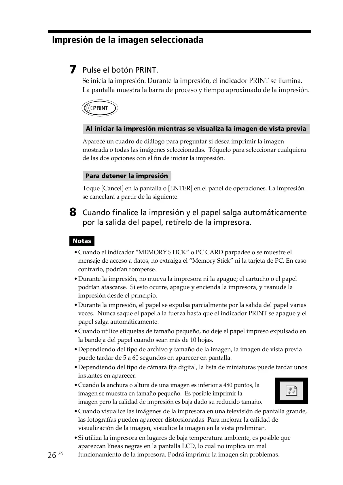 imagen pero la calidad de impresión es baja dado su reducido tamaño.