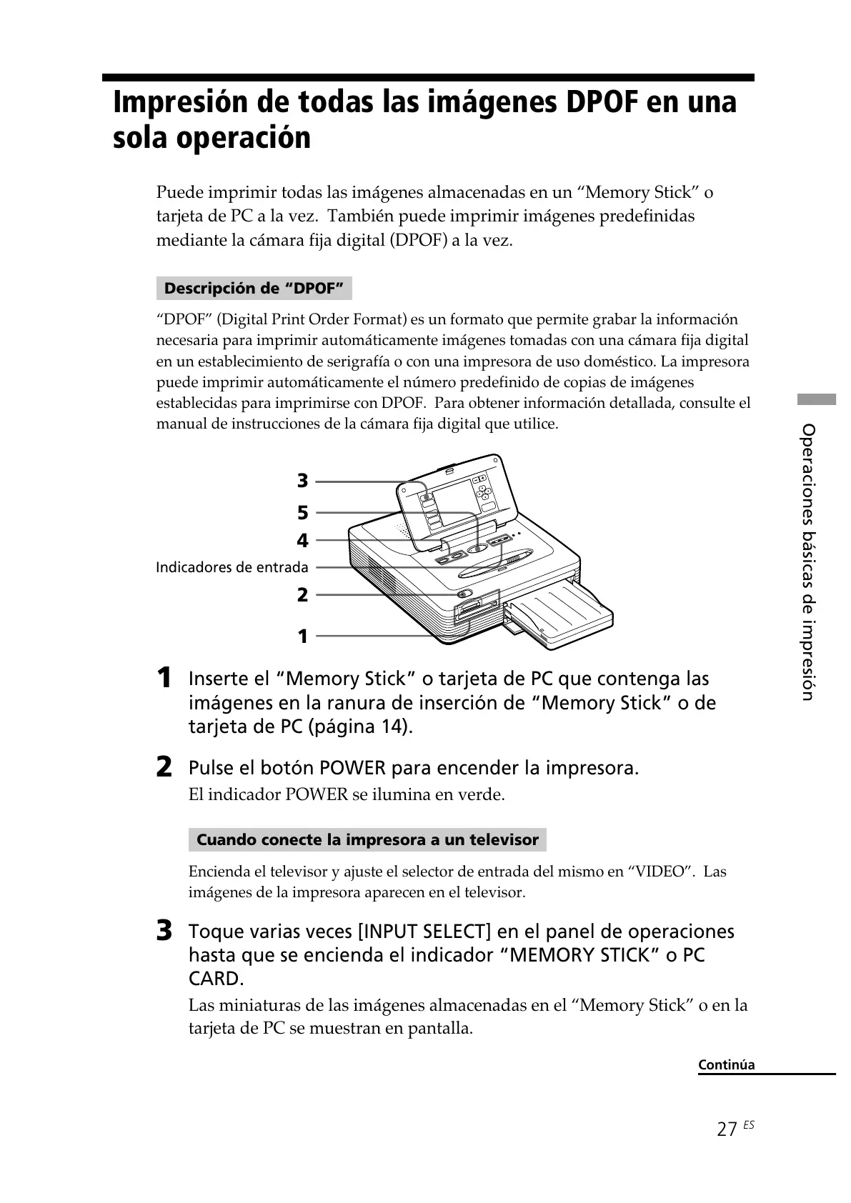 Puede imprimir todas las imágenes almacenadas en un “Memory Stick” o