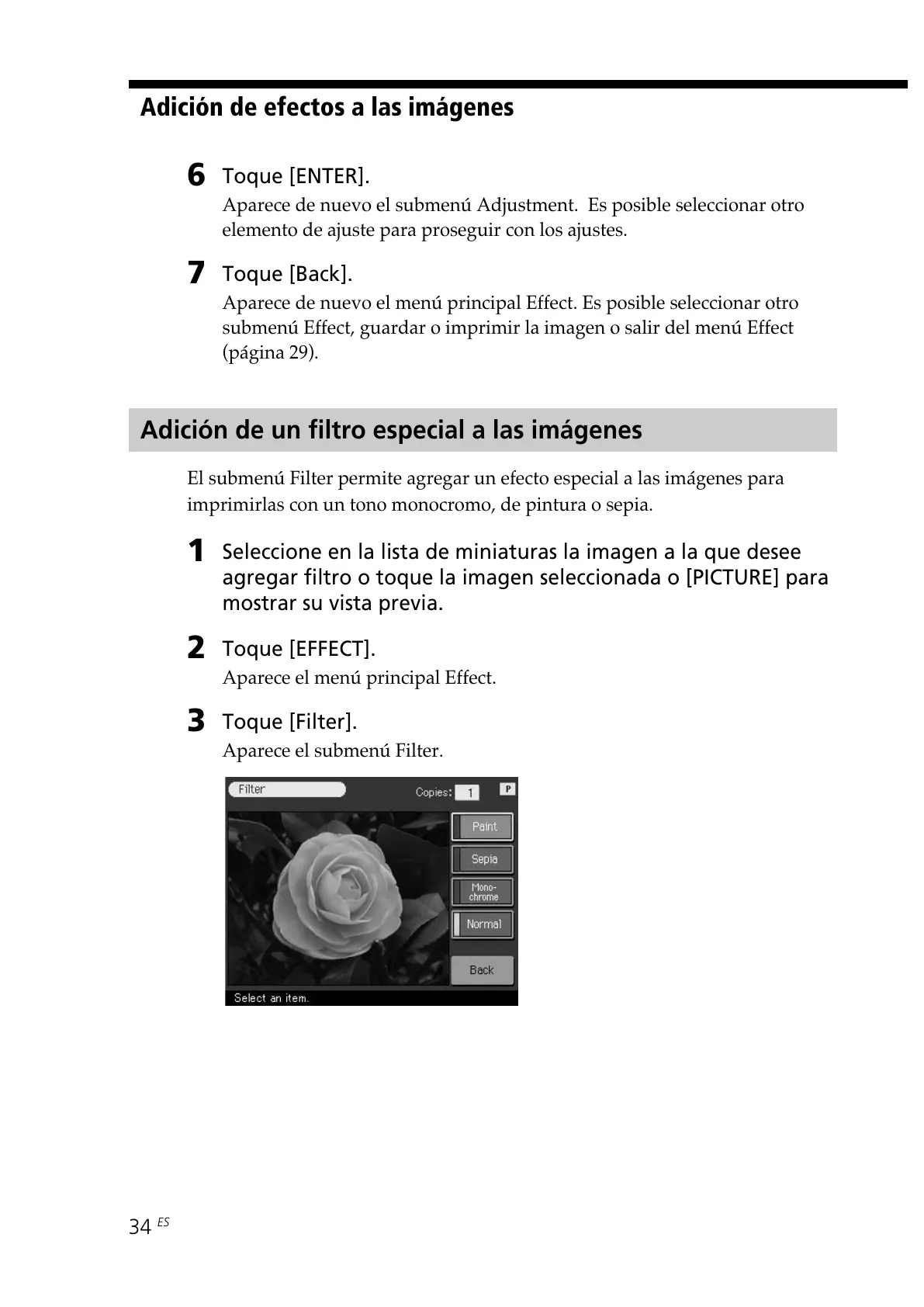 agregar filtro o toque la imagen seleccionada o [PICTURE] para