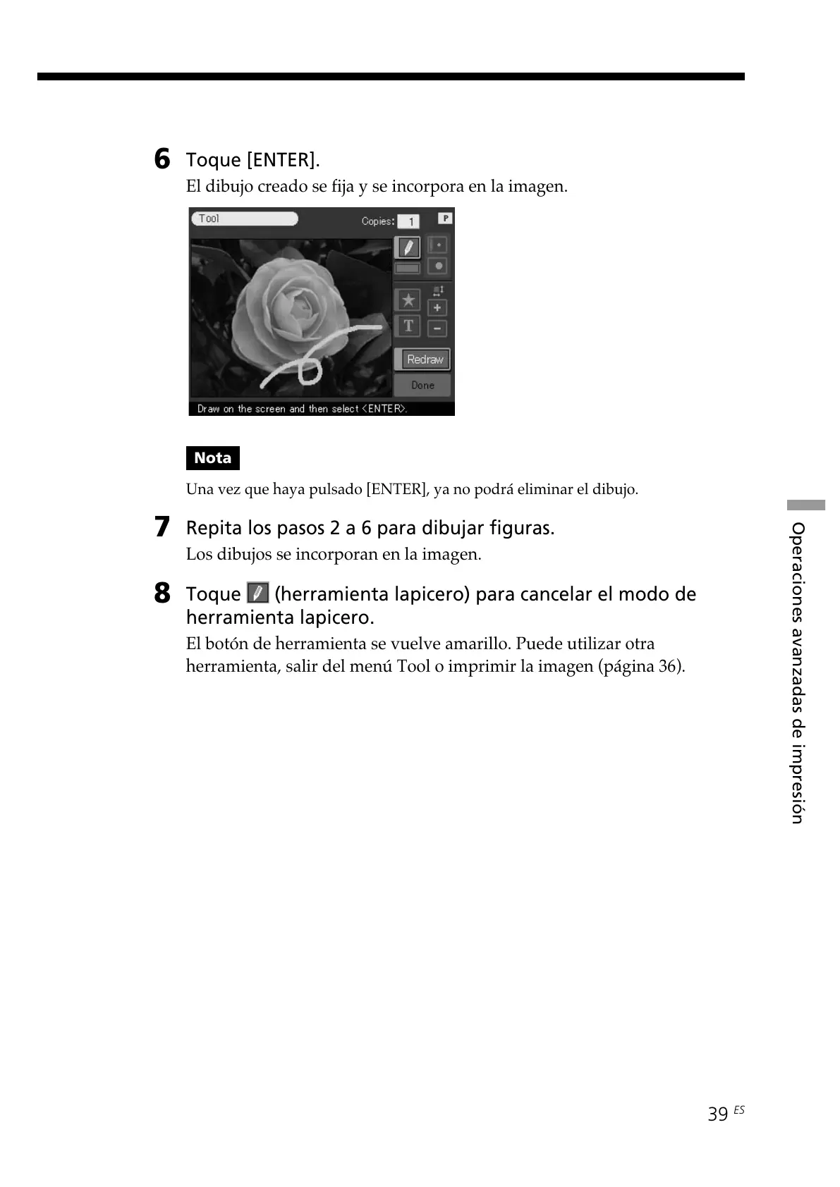 Una vez que haya pulsado [ENTER], ya no podrá eliminar el dibujo.