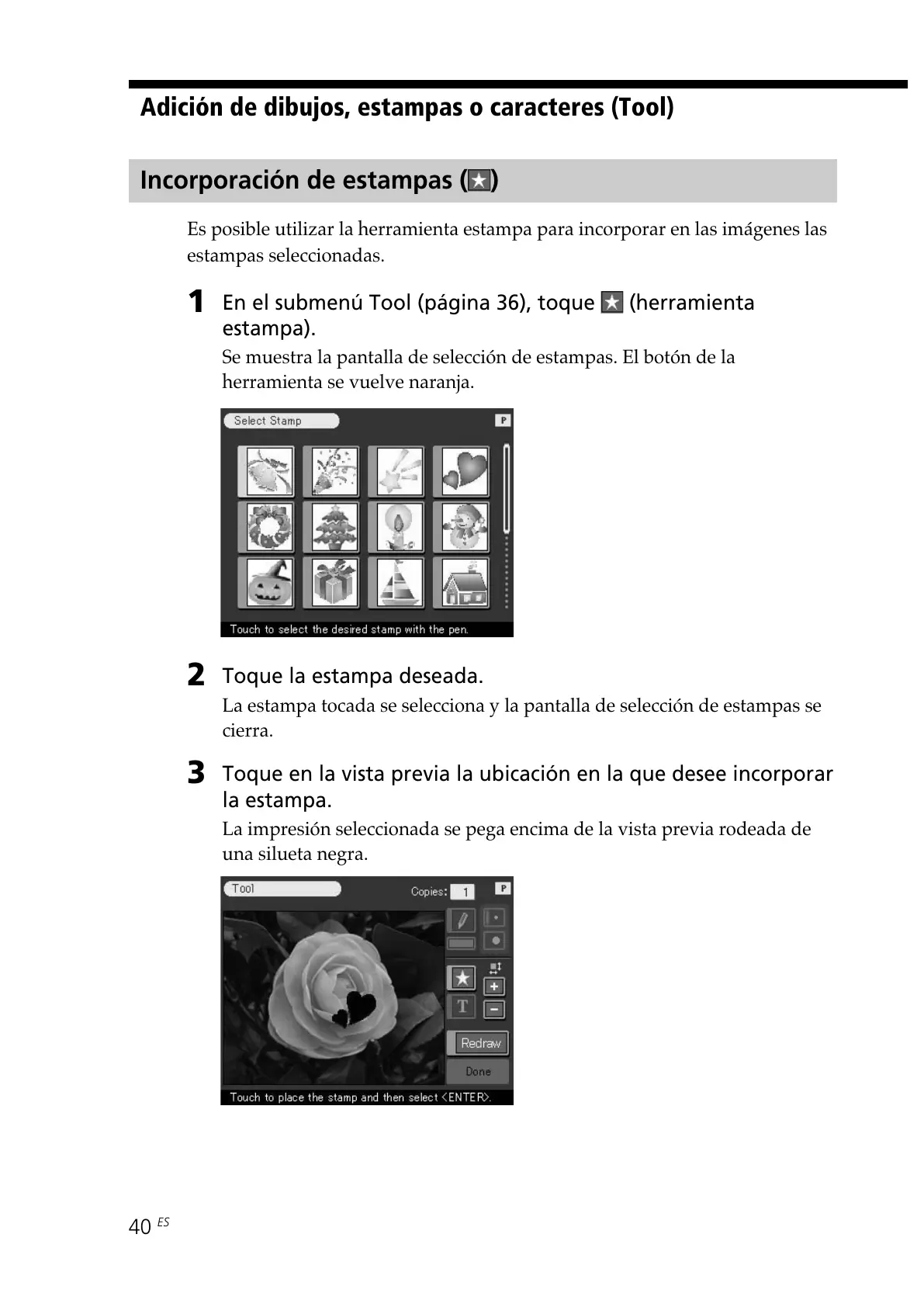 Adición de dibujos, estampas o caracteres (Tool)