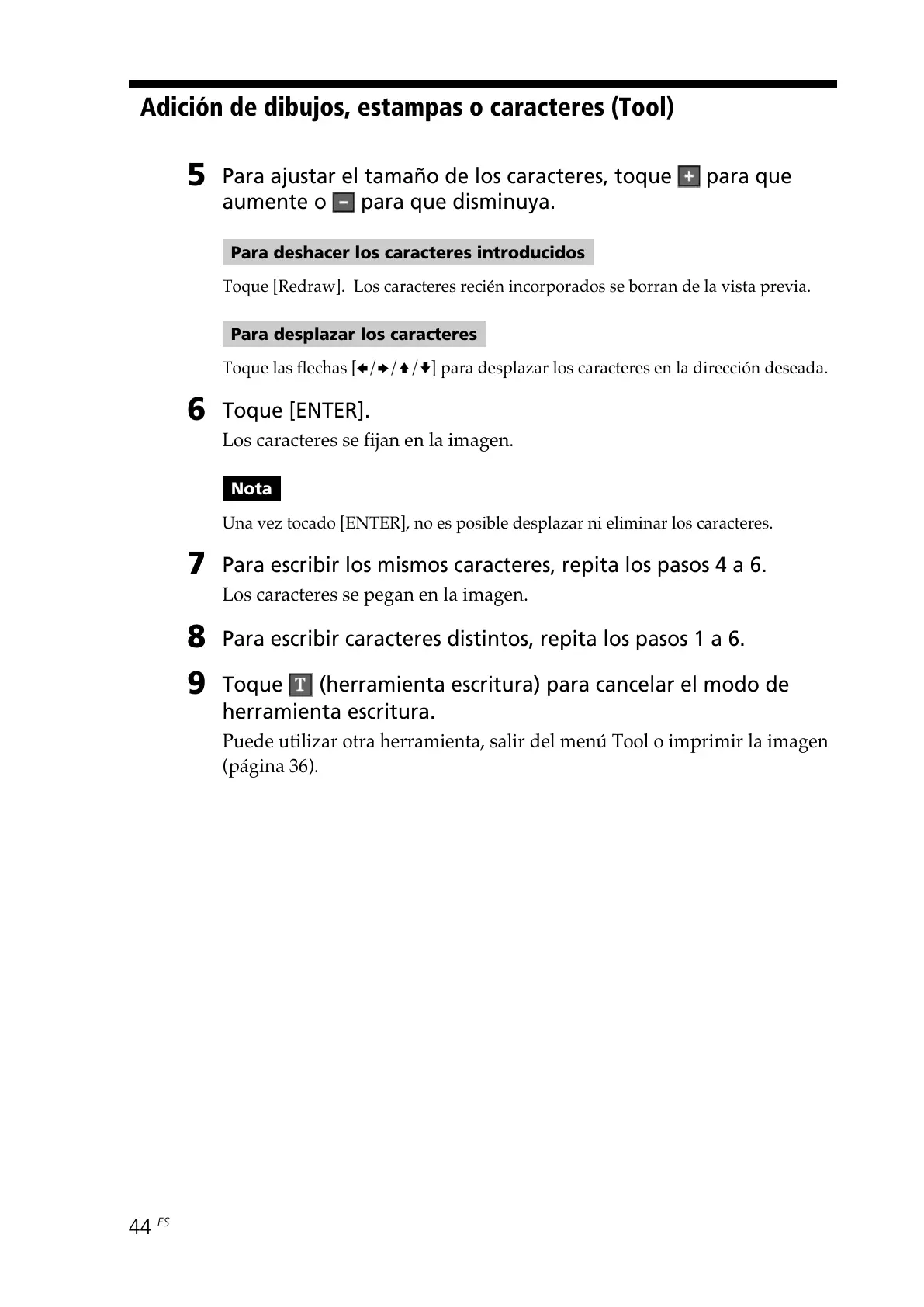 Para escribir caracteres distintos, repita los pasos 1 a 6.